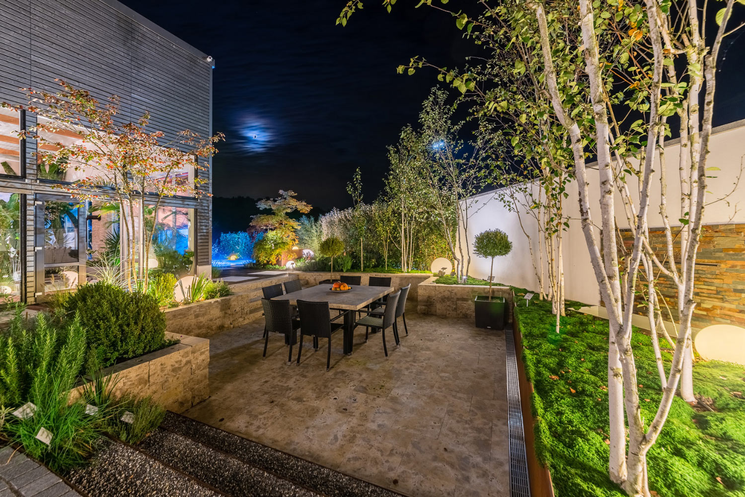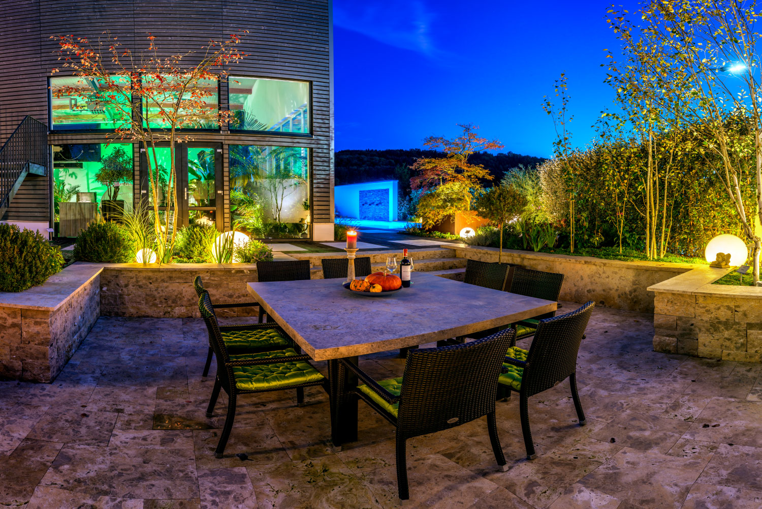 In unserer Ausstellung im Hilzinger Gewerbegebiet können Sie einen ersten Eindruck von unseren Gartendesign-Arbeiten gewinnen. Sie ist nicht nur wegen ihres einzigartigen Tropenhauses einen Besuch wert: Neben Pooldesigns, Bepflanzungsvorschlägen, Terrassengestaltungen sowie kreativen Mauerlösungen bieten wir Ihnen eine der größten Gartenbeleuchtungsausstellungen der Region. Besonders in den dunklen Abendstunden kommt sie zur Geltung. Gerne bieten wir Ihnen nach Terminvereinbarung auch einen Rundgang an. Kommen Sie vorbei und erzählen Sie uns von Ihren Wünschen.