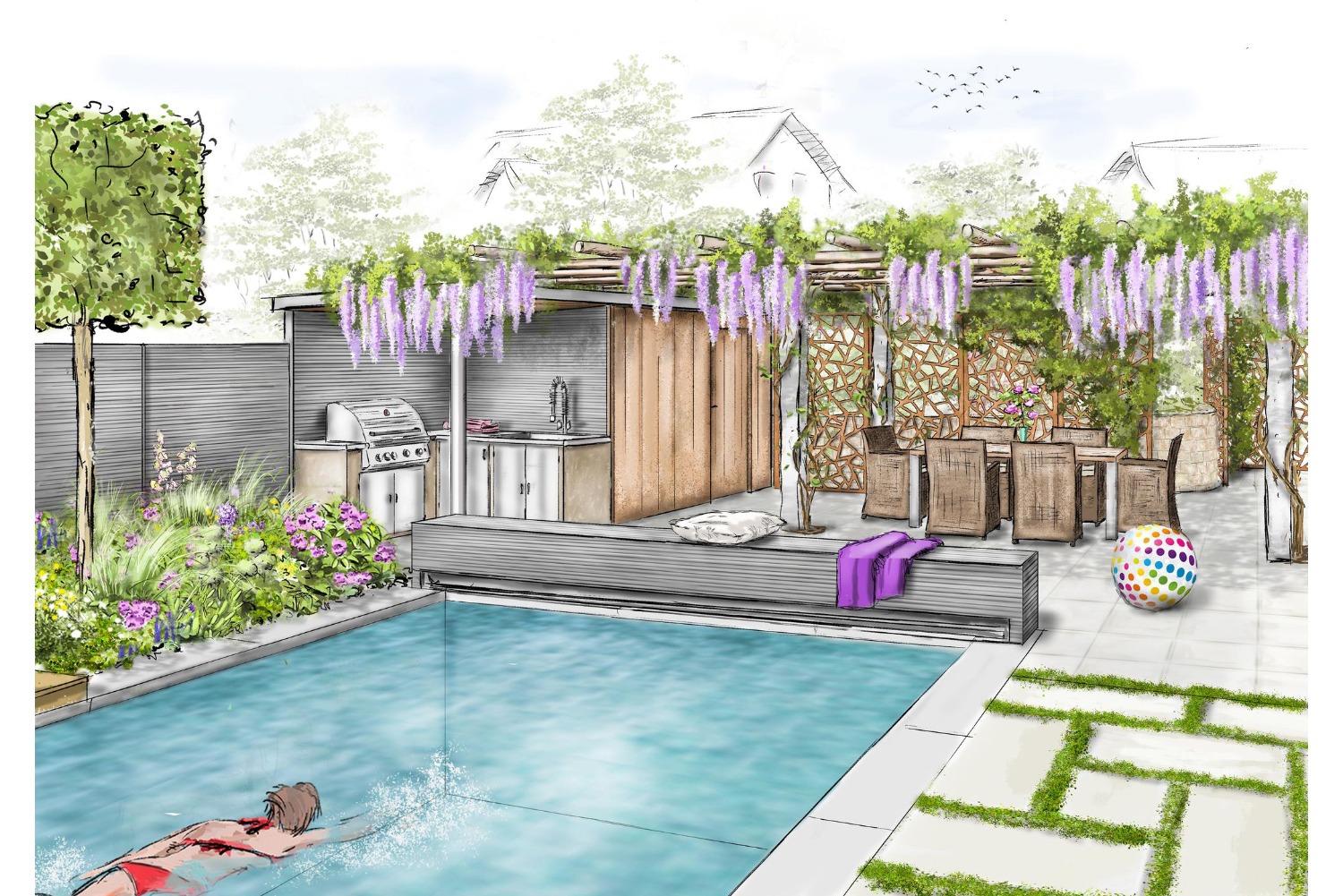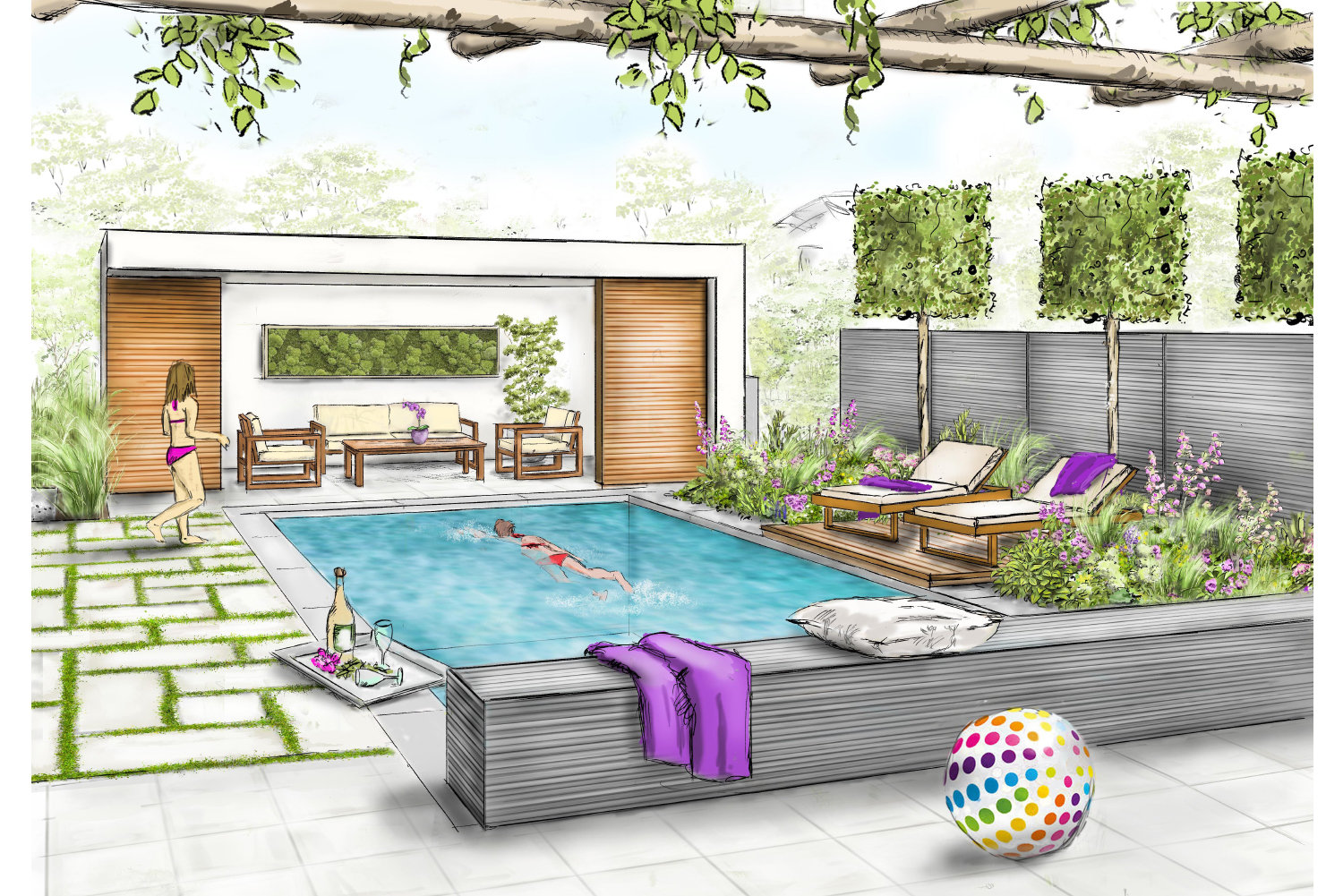 Gemäß Ihrer Budgetvorstellungen entwerfen wir Ihren Traumgarten, Ihre Dachterrasse und Ihre Wellness-Oase mit Pool – zuerst auf Papier dann vor Ihrer Haustüre.